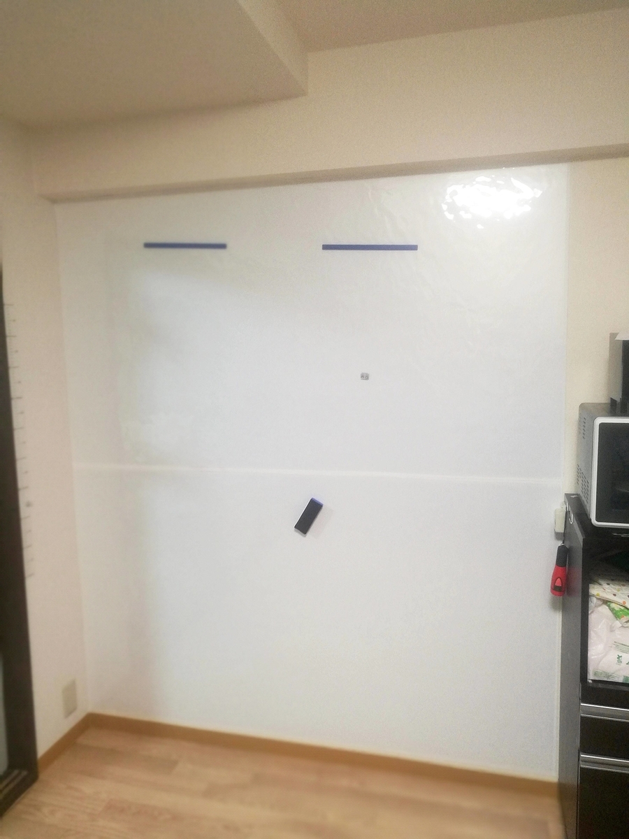 リビングのテーブル横の壁、一面をホワイトボードにしてみました。